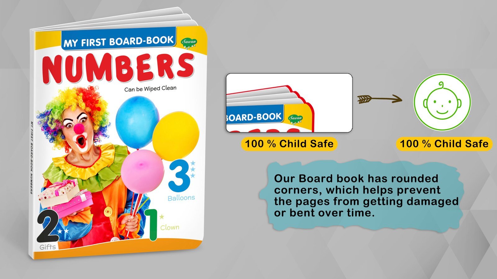 Sawan presents the kids’ board Book of Numbers – The perfect first picture board book for your child to learn numbers. Well-researched pictures will help your baby to identify numbers, build vocabulary and improve observation skills. Reading books is a kind of enjoyment. Reading books is a good habit. It can be an ideal gift to yourself and to your loved ones.