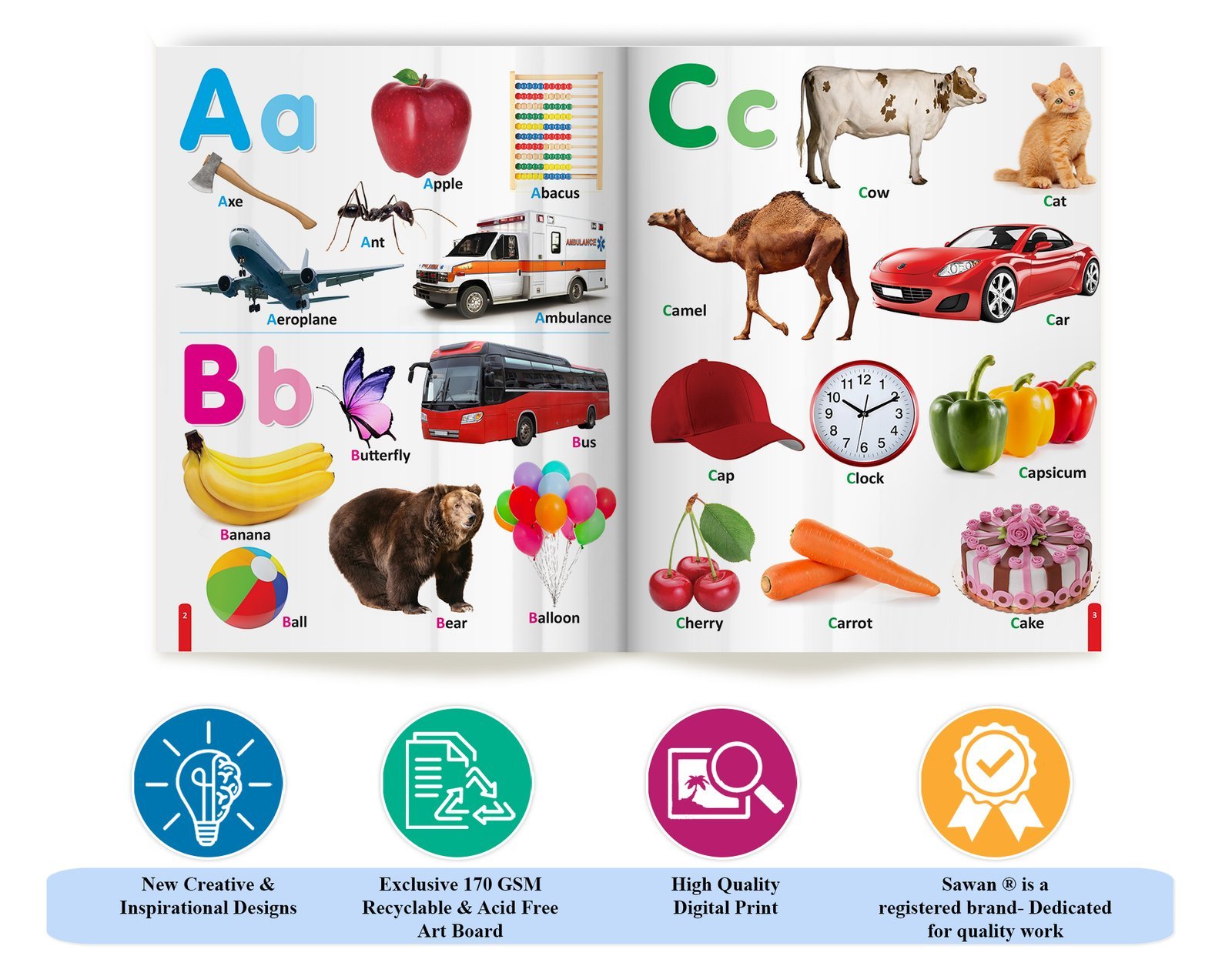 “ABC Picture Dictionary” is a captivating early learning book for kids and a valuable addition to the My First Book series by Sawan Books. With its wipe-clean feature, children can enjoy a hands-on learning experience as they explore the alphabet and expand their vocabulary. The book consists of approximately 8 pages of durable board paper, ensuring longevity even in the hands of young learners. The four-colour, laminated pages are adorned with realistic pictures that engage children’s imagination and make learning a visually stimulating adventure. This delightful book is a perfect tool for early language development, introducing children to the alphabet and fostering their love for learning.