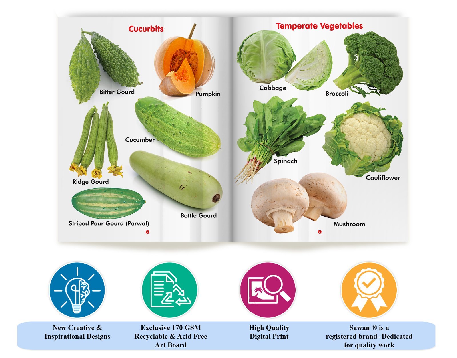 Sawan presents My First Book of Vegetables – the perfect first picture board book for your child to learn about vegetables. Well-researched pictures will help your baby to identify vegetables, build vocabulary and improve observation skills. This set of six books filled with colour pictures will encourage children to build a foundation for learning. A wide variety of the most popular preschool topics will enhance their vocabulary and language skills.