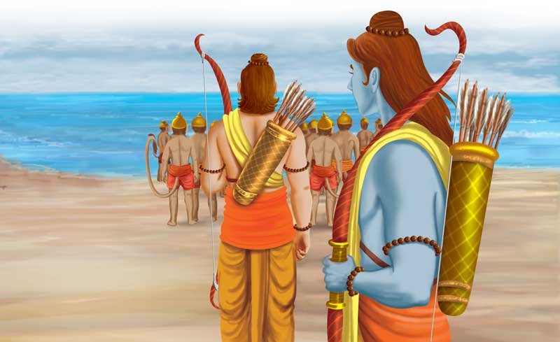 Soon, Rama and Lakshmana along with the entire monkey-army reached the shore of the ocean at Mount Mahendra. There, they discussed how they were to go across the ocean. Rama was also worried for this reason. They had no clue as to how to cross over the mighty ocean that lay ahead.
