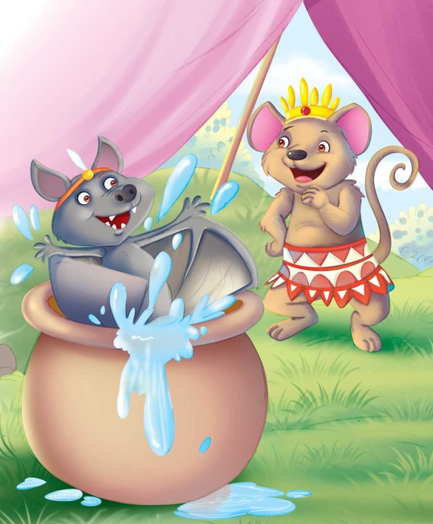 A bush rat named Oyot and Emiong, the bat were great friends. They always ate together. But the bat was secretly jealous of the bush rat. Whenever Emiong cooked the food it was very tasty, and Oyot would ask him how he made the food so tasty, “How do you prepare the soup? It is so tasty.” The bat replied, “I always boil myself in the water, and my flesh is very sweet. That is why the soup is good.” Emiong, then, told the bush rat that he would show him how it was done. He got the pot of warm water but told Oyot that it was boiling water. Emiong jumped into it and came out shortly. When the soup was served, it was as tasty as usual because Emiong had prepared it beforehand.