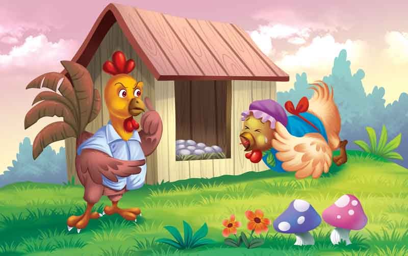 The next few days were equally terrible. More eggs vanished and one day the rooster found the hen weeping bitterly with just two eggs left in her nest.