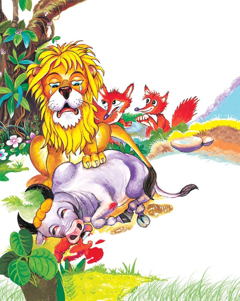And the next day, Damanaka went to Sanjeevaka and told him a different story. ‘‘King lion has a plan to kill you and distribute your flesh to all other animals of the jungle. Better you kill king lion with your pointed horns, before he kills you.’’