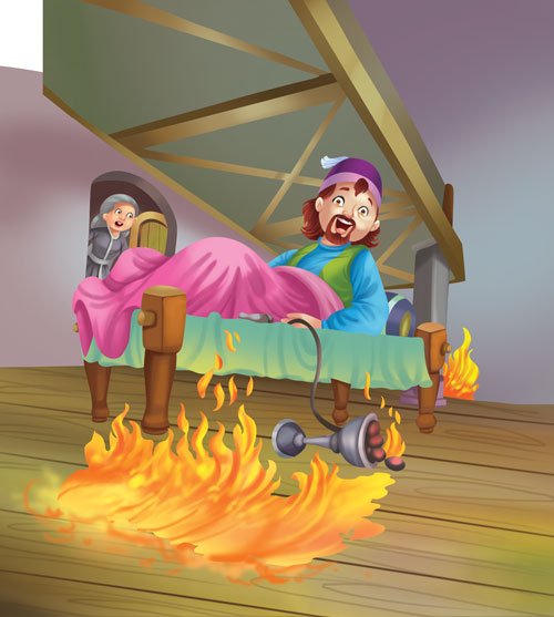 Once, Sheikh Chilli ran away from a friend’s party, because some people made fun of him. Sheikh was very angry with those people. He mumbled, “Why can’t people leave me alone? How dare they make fun of me all the time?” Meanwhile, Fawzia indicated that in hurry Sheikh had brought the hookah with him by mistake. She told him that his friend must be searching for it. But Sheikh, who was too busy grumbling, did not pay attention to Fawzia’s remarks. He asked her to leave him alone in the porch for a while. In fury, he started dreaming that he was fighting with the people who were making fun of him. And the burning hookah fell on the wooden floor of the porch. And soon, the porch got burnt! Fawzia came out running to dowse the fire and cursed Sheikh and his day-dreaming habits.