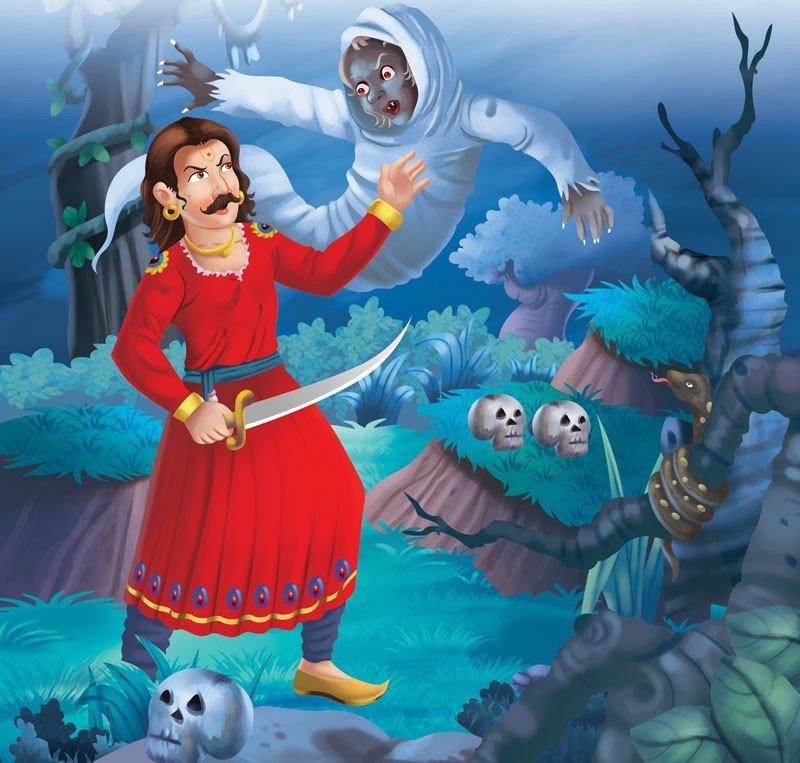 Baital exclaimed, “Absolutely right! But as you have spoken, I have no option but to leave you and return to my dwelling in the peepal tree.” Saying this, Baital flew away with King Vikramaditya chasing him once again.