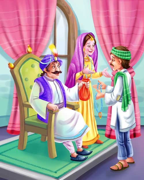A king, once presented his daughter an engagingly beautiful diamond necklace. She loved the gift and kept it in her room. But somehow it went missing that made the king and the princess perplexed. The king then announced to reward of 50,000 to the one who would return it. All people along with the courtiers searched for the necklace but couldn’t find it. A few days passed; a tailor saw the necklace in a filthy and polluted river on his way. The necklace could give him 50,000. He went near the river and tried to have it but he couldn’t. The necklace was still there; this time, his greed led him to jump into the river that dirtied him from head to toe. Again, he failed; that made him really wretched. He was offered by a saint for help who was coming by him. The tailor unwillingly revealed the truth as the saint made him promise not to tell anyone. Now the saint showed him the necklace hanging in a branch upward. The tailor gave the necklace to the king and received ` 50,000.