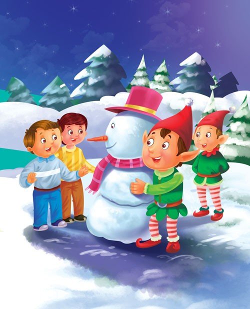 During Christmas, a father made a snowman in the garden. His children played around the snowman every day. It was so much fun. At night, they watched him from the window. One full moon night, the children saw elves dancing around the snowman. They were having a merry time. Dressed in lovely colours, they were having a party. In the morning, the sun shone bright in the sky. It was the beginning of spring. The children saw the elves carry the snowman with them. They ran after the elves and said, “Please do not take him!” One of the elves said, “Oh! We are carrying him to a safe place in summer. He will come to meet you next winter.” The children happily bade them goodbye. Later, their father came out and saw the snowman missing. He said, “Oh, the snow has melted the snowman!” But the children smiled. They knew the secret.