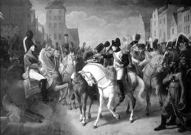 Next morning, the 4th, came Schwarzenberg’s assent, and Marmont at once set about suborning his officers; at four in the afternoon arrived an embassy from Fontainebleau on its way to Paris. The officers composing it desired to see Marmont.