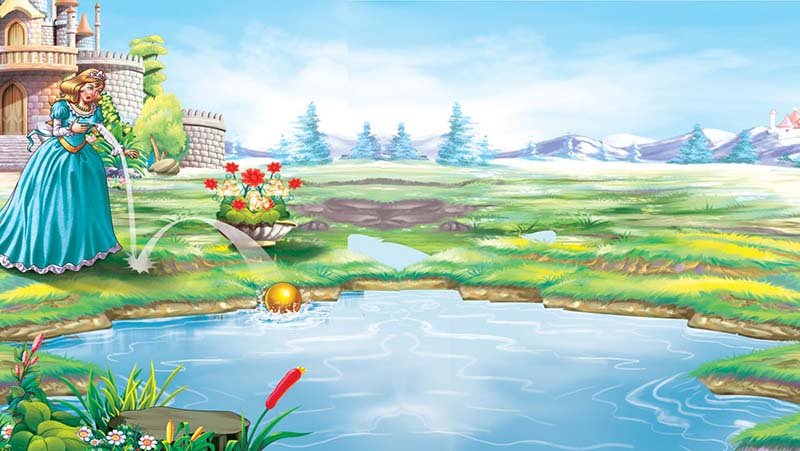 Once a Princess was playing with a golden ball near a spring. Accidentally, the ball fell into the spring.
