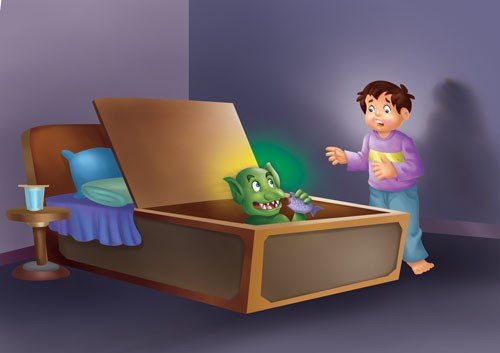 One night, Henry was about to lie down on his bed. Just then, he saw a green light emanating from the box in his bed. He eyes widened with fear to see a crooked goblin sitting there, eating rancid flesh. The goblin sneered at Henry with his jagged teeth. Henry wanted to scream but no voice came out. The goblin swished like a snake and elongated its tongue to engulf Henry. Henry tried to free himself but the goblin spit its green drool over him. Then, the goblin hypnotised Henry and turned him into a black cat. The goblin was about to dig its pointed claws into the cat, when Henry’s mother knocked at the door. The goblin disappeared, but not before ruthlessly throwing the cat on the bed. When Henry’s mother entered the room, she found him sleeping peacefully. Little did she notice that the cat’s whiskers on her son’s face and the green eyes were peeping in from the window