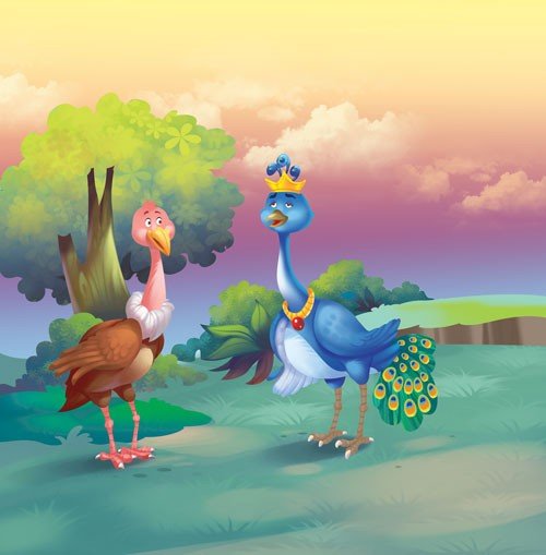 “So you see, Sir, it is not sensible to be impatient and act in a hurry,” advised the old vulture, “One should not do things when one is highly emotional or angry, drunk, full of pride or greed or be too attached to anything. Then one will make mistakes.” “So what do you think we should do now?” asked the King. “It is better to make peace with King Silver Plume, Sir,” advised the wise old vulture again, “What we have heard from Meghavarna and others has convinced me that the Swan King and his minister are wise and noble. And it is only a conceited fool who will not follow such a path of peace with them.” King Jewel Plume was worried and fed up, so he agreed to follow Doordarshi’s advice. Having got the King’s consent, Doordarshi, the vulture began preparations for peace.