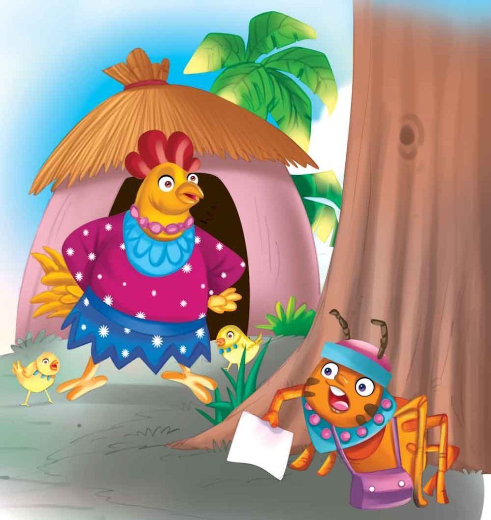 Once upon a time, a kite’s son was very ill. The kite’s sister came up to her and said that she knew a good doctor for her son. “The spider is the best doctor here. I can ask him to come and see your son.” The mother kite asked her to send him to her house. So, her sister went to the spider and said, “The kite has a son and it is very ill. Will you go to her house and see him?” The spider agreed but at the same time was afraid to go there. He said, “There lives a hen near the kite’s house and she will eat me up.” The kite’s sister assured the spider that the hen won’t eat him up. So, the spider took his medicine bottles, put them in a bag and went to the kite’s house. But he was afraid of the hen. So, he wrote everything on the paper and put it into his bag with the medicine bottles. Soon, the spider saw the hen. He hid himself behind a tree.