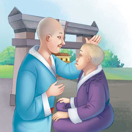 The woman became angrier and she would not be pacified. The man waited for a long time but she did not turn into a fox again. He was finally convinced that he had done a shameful task. Although he apologised to her until he ran out of words, she couldn’t be convinced to forgive him so easily. “Then if nothing else does, I’ll become a priest to redeem for this,” said the man. Both of them went to a temple near by, where he explained everything to the priest and got his head shaved. When the priest shaved his head, it hurt him so much that he came back to his senses and looked around. The woman and her child had disappeared. Moreover, there was neither the priest nor the temple. The man’s hair which he thought had been shaved off, was actually chewed off by a fox.