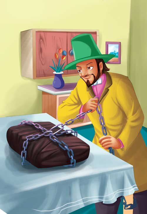 The pupil couldn’t make gold or silver. The mirror was clouded and he could only hear the sea in the shell! Then, he noticed that the book was open! The master had forgotten to lock it! He opened it and read a few words without understanding them. Suddenly, with a thunderclap and an earthquake, the horrid-looking demon, Beelzebub, with fiery eyes and smoke, stood before him! “Give me a task, or I will destroy you!” said Beelzebub. The pupil was too terrified to think, but just as Beelzebub reached out to strangle him, he pointed to a flower pot and shouted, “Water that plant!” Beelzebub kept bringing barrels of water and pouring them till everything in the room was floating! Luckily, the master remembered that he had left the book open and returned to close it. He was just in time to lock up Beelzebub and save his foolish pupil from being drowned!