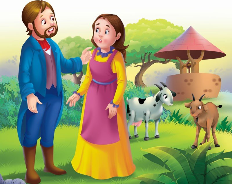 The billy goat’s wife asked him to get the green leaves growing inside the well. But the billy goat replied, “How can I get them without falling in and getting drowned in the well? I am not so stupid as the merchant here who is about to sacrifice his life for his silly wife.” Saying so, he started walking away. His wife ran after him, apologising for her silly request.