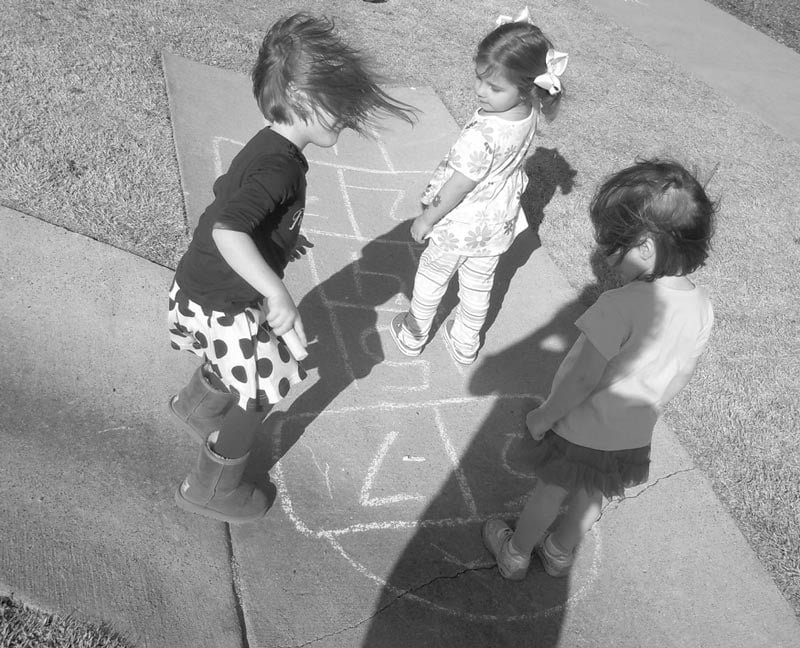 “I’m walking to the mall now. Maybe later I can find out who did it,” Nina told him. Soon she saw three girls playing hopscotch. She decided to stop and watch how expertly they moved over the chalk marks.
