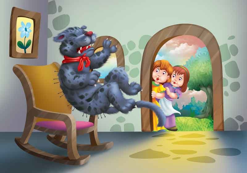 “I’ve walked a long distance and I’m tired,” said the panther. So, finally the daughters opened the door. But soon, they realised that this wasn’t their mother.
