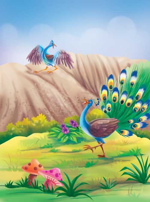 Once a peacock was dancing in a forest spreading his feathers out. No doubt, he looked very beautiful and felt proud of his feathers. Suddenly, a crane came there. He wished the peacock and they started talking. While talking, the peacock looked at the feathers of the crane with hatred. The crane asked the peacock, “Why are you looking at me like this?” The peacock replied, “I am looking at your dull feathers; they have no lustre and beauty. See mine; how attractive they are! Nature has done so much injustice to you- such a strong bird and so dull feathers. This is really a pity.” The crane replied, “Nature has always been fair with every creature. Though you have beautiful feathers while mine are dull, yet I can fly high in the clouds and you can’t do that at all.” The peacock felt ashamed and begged the crane’s pardon.