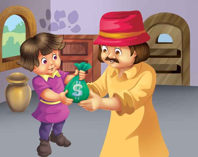 “Father, tell him it broke. It would have cost him ten coins for a new one. Give him twenty!” replied the boy. “There’s a lot of money here! We’ll never want for money again,” the boy assured his father.