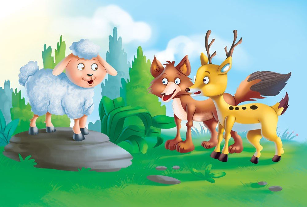 A certain wolf and a stag were friends. One day, the stag was hungry. The wolf suggested, “Why don’t you borrow some wheat from the sheep.” Both of them went to the sheep. The stag said to the sheep, “Please give me some wheat. I will return it after some time.” The sheep replied, “Oh no! I can’t give you my wheat.” The clever stag said, “I will surely return it. But if you want, you can keep the wolf. When I come to return your wheat, I will take him.” The sheep was scared that they might be playing a trick on her and said, “The wolf is used to taking what he wants and to run off; and you, too, can quickly outdo me in your speed. How, then, shall I be able to find you, when the day of payment comes?”
