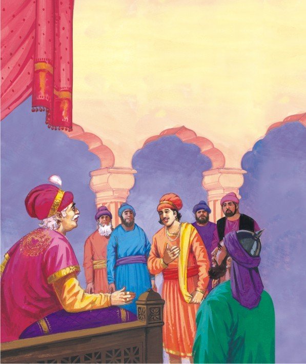 It was rainy season. River Yamuna was in spate and overflowing. The gushing water was making a lot of noise. The Emperor’s palace was situated on the river-bank. He was fast asleep.