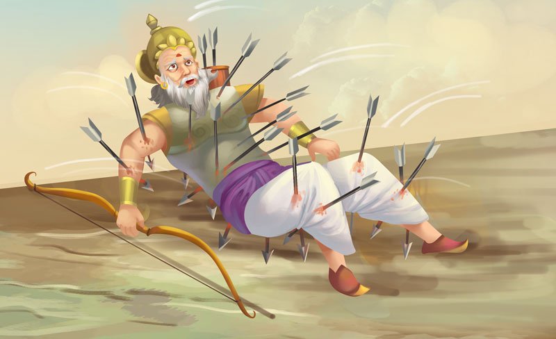 Bhishma refused to fight against Shikhandi. Thus, Arjun shot a hundred arrows and pinned Bhishma down. There was no way to kill Bhishma as he had a gift of choosing the moment of his death.