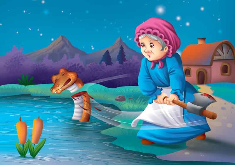 An old woman lived with her daughter near a lake where the girl often bathed with her friend. One day, when they were bathing, a water snake came out and sat on the girl’s dress on the bank. So, the old woman’s daughter could not wear it, because the snake sat on it.