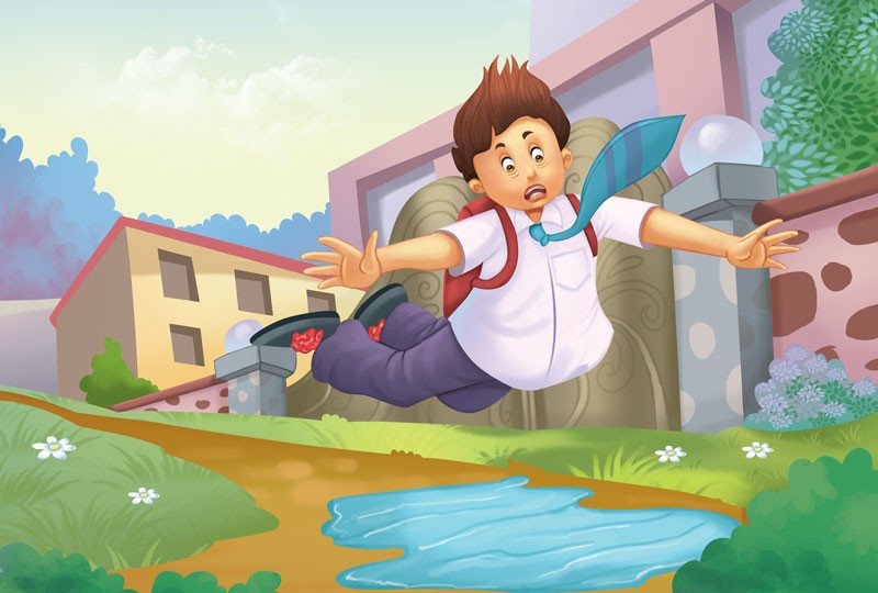 In fact, no one noticed. It was a cloudy day. As he was getting into the bus to come home, it began to rain. By the time the bus reached his bus stop, it was pouring. Tony was not carrying an umbrella, so he just picked up his bag and ran. He slipped and fell into a puddle. Then he got up and ran again.