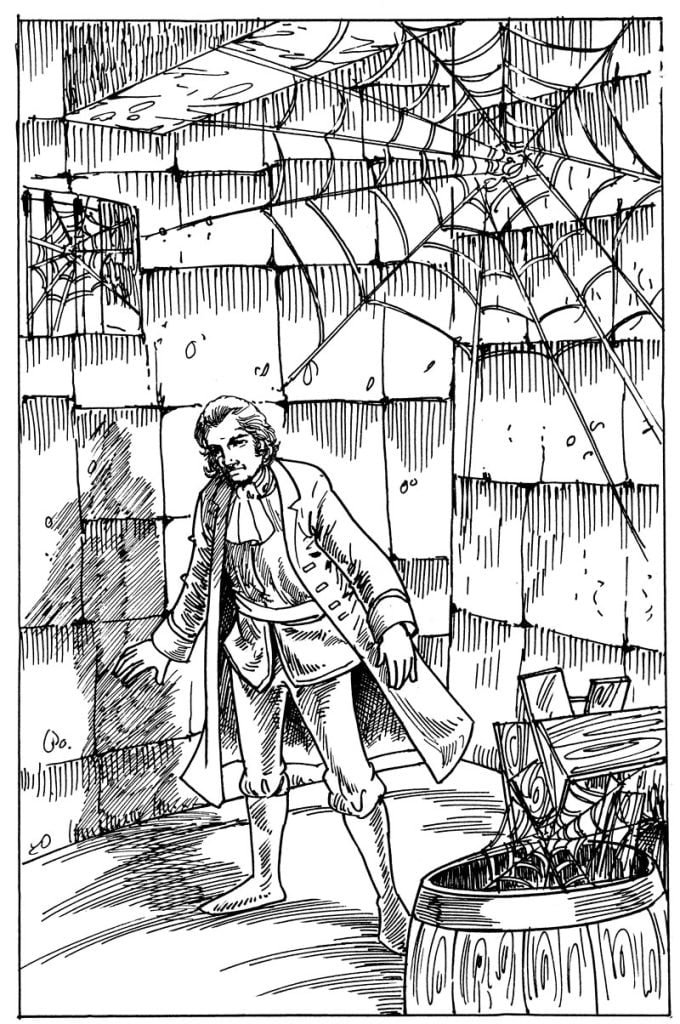I went into another room where the walls and ceiling were all hung round with cobwebs. There was a very narrow passage for the artist to go in and out. As I entered the room, he called aloud to me, “Do not disturb the webs.” He continued further, “By employing spiders the charge of dyeing silks could be wholly saved.”