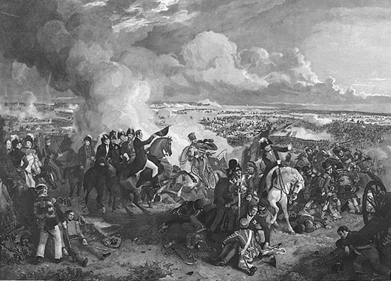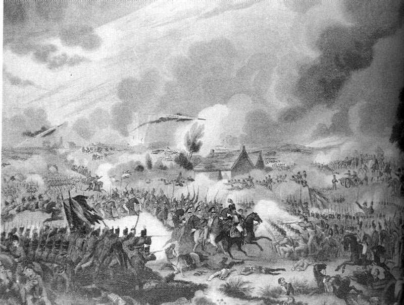 The front ranks of the French replied with spirit, but when the British had completed their manoeuver, Colborne gave the order, his men cheered in response, and the counter-charge began. “Vive ‘Empereur!” came the responsive cheer from the thinning ranks of the assailants, and still they came on. But in the awful crash they reeled, confusion followed, and almost in the twinkling of an eye the rout began. A division of the old guard, the two battalions under Cambronne, retreated in fair order to the center of the valley, where they made their last gallant stand against the overwhelming numbers of Hugh Halkett’s German brigade. They fought until but a hundred and fifty survived. From far away the despairing cry of “Sauve qui peut!” seemed to ring on their ears. To the first summons of surrender the leader had replied with dogged defiance; the second was made soon after, about three in the afternoon, and to this he yielded. He and his men filed to the English rear without a murmur, but in deep dejection. This occurrence has passed into tradition as an epic event; what Cambronne might well have said, “The guard dies, but never surrenders,” was not uttered by him, but it epitomizes their character, and in the phrase which seems to have been shouted by the men themselves in their last desperate struggle, they and their leader have found immortality.