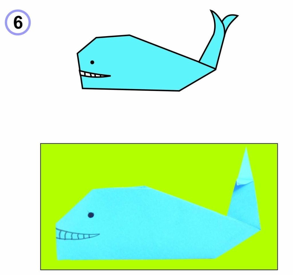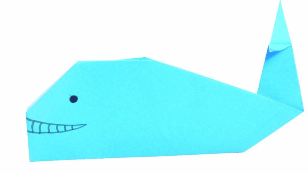 Draw the eye and the teeth of the whale. Your whale is ready.