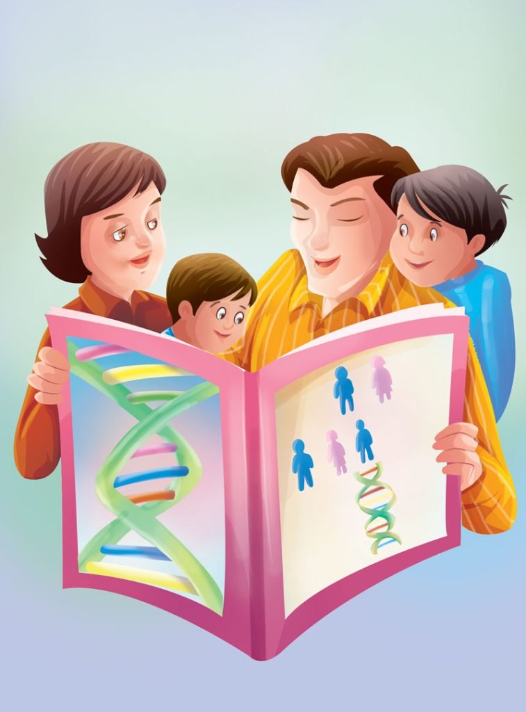 Through heredity, living things inherit traits from their parents. Traits are physical characteristics. We resemble our parents because we inherited our hair and skin colour, shape of nose, height, and other traits from them.