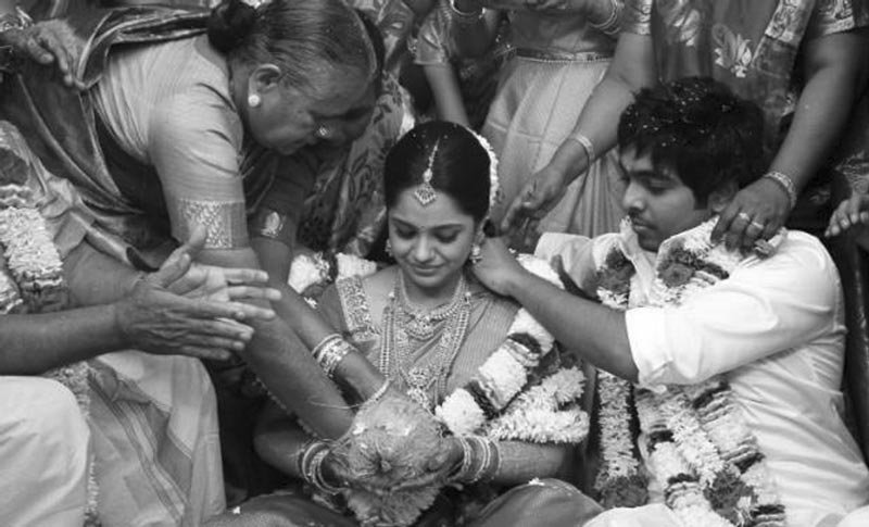 The wedding ceremony lasted several hours. It started with the bride and the bridegroom took a yellow string from a silver tray and tied it round the bride’s neck. This act symbolized that they were now united in marriage.