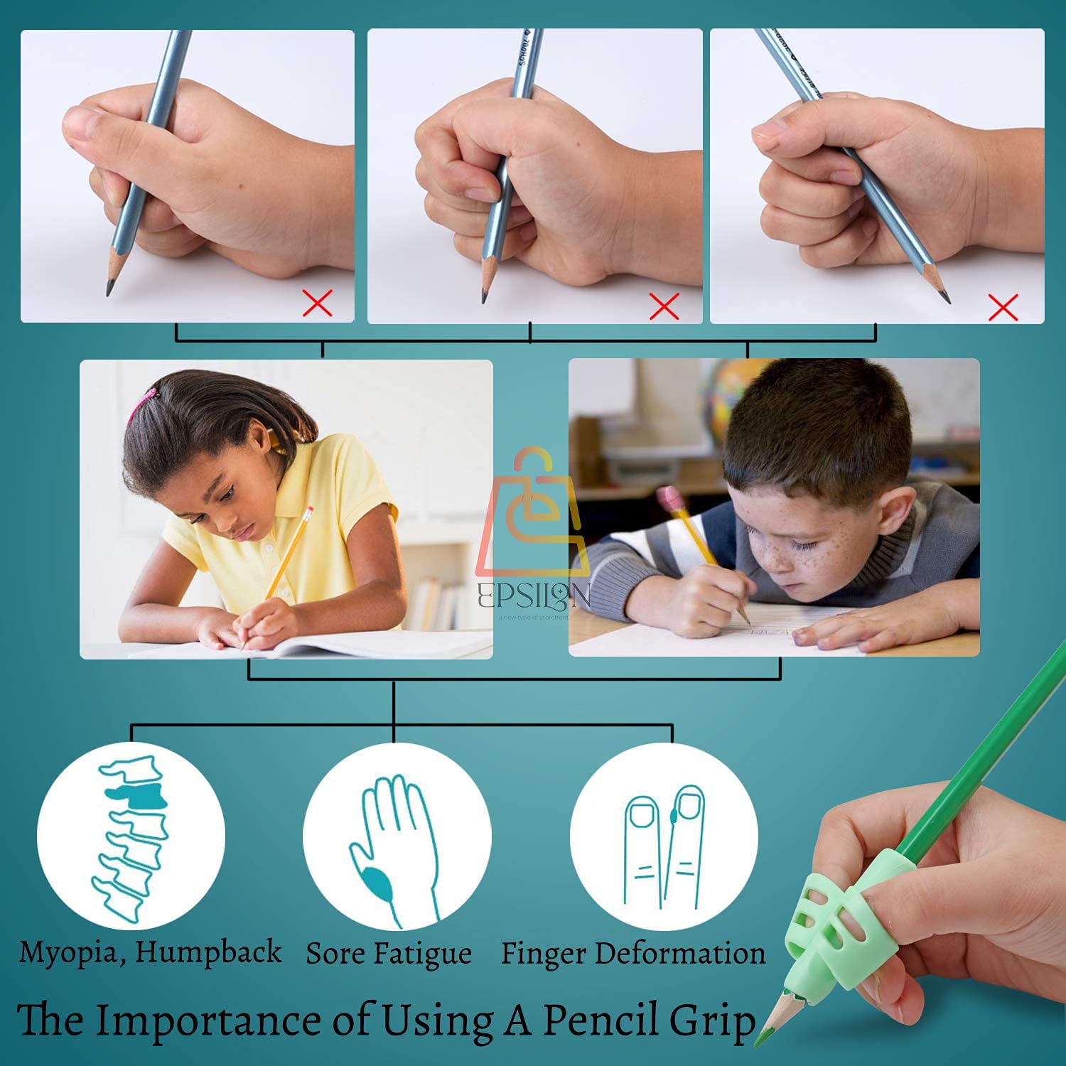 2. Epsilon 4 Pcs Pencil Grips Posture Correction Tools for Preshoolers